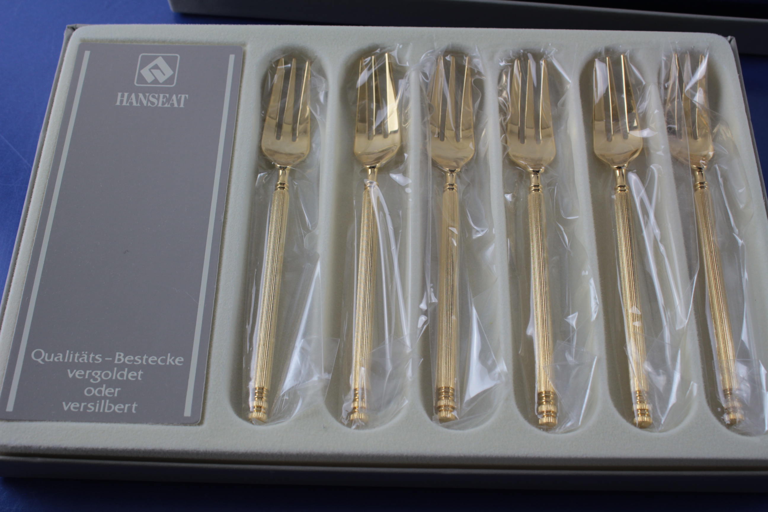 Hanseat 6 Kuchengabeln 13,5 cm August Warnecke vergoldet OVP