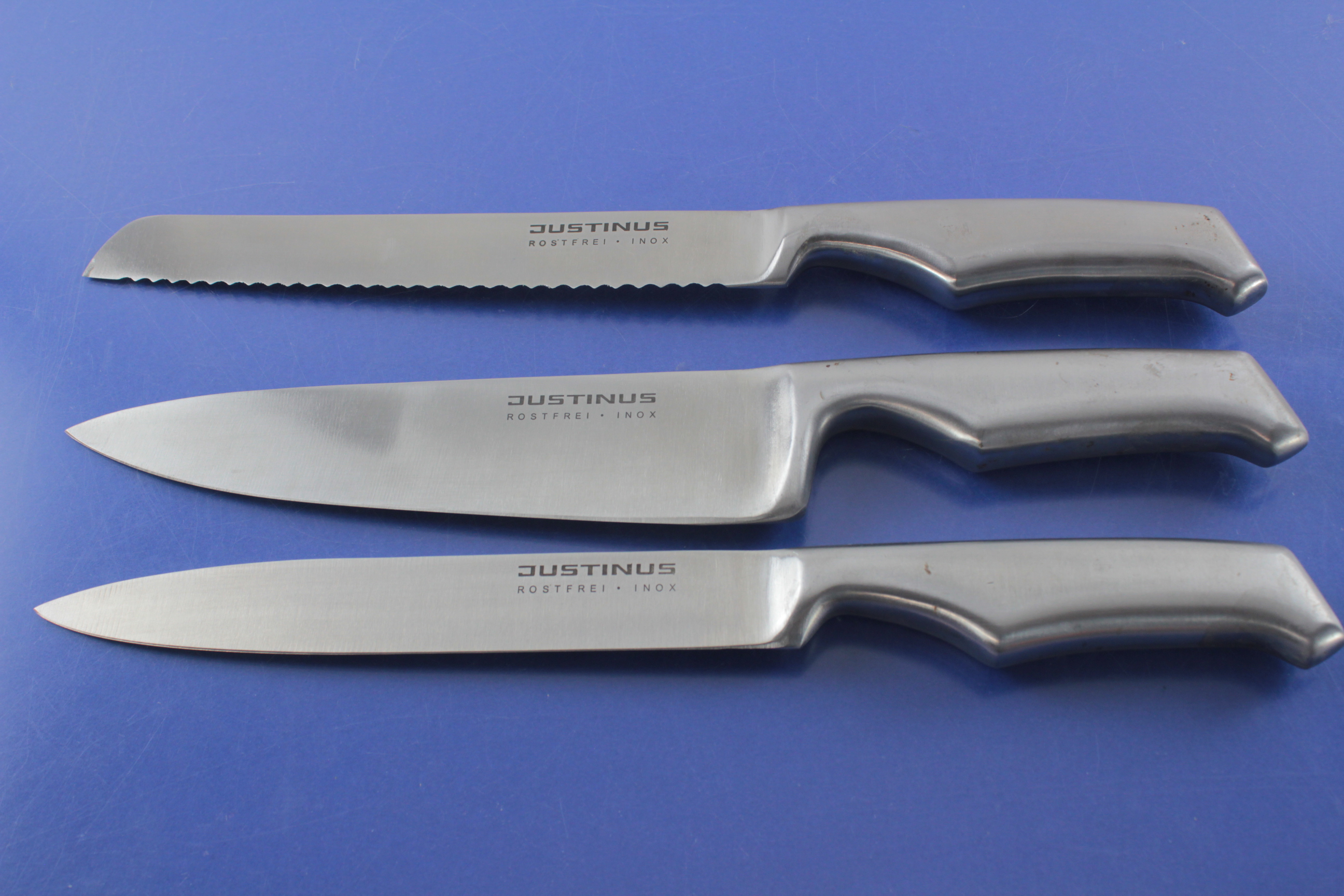 Justinus 3 Messer: Brotmesser, Kochmesser und Universalmesser