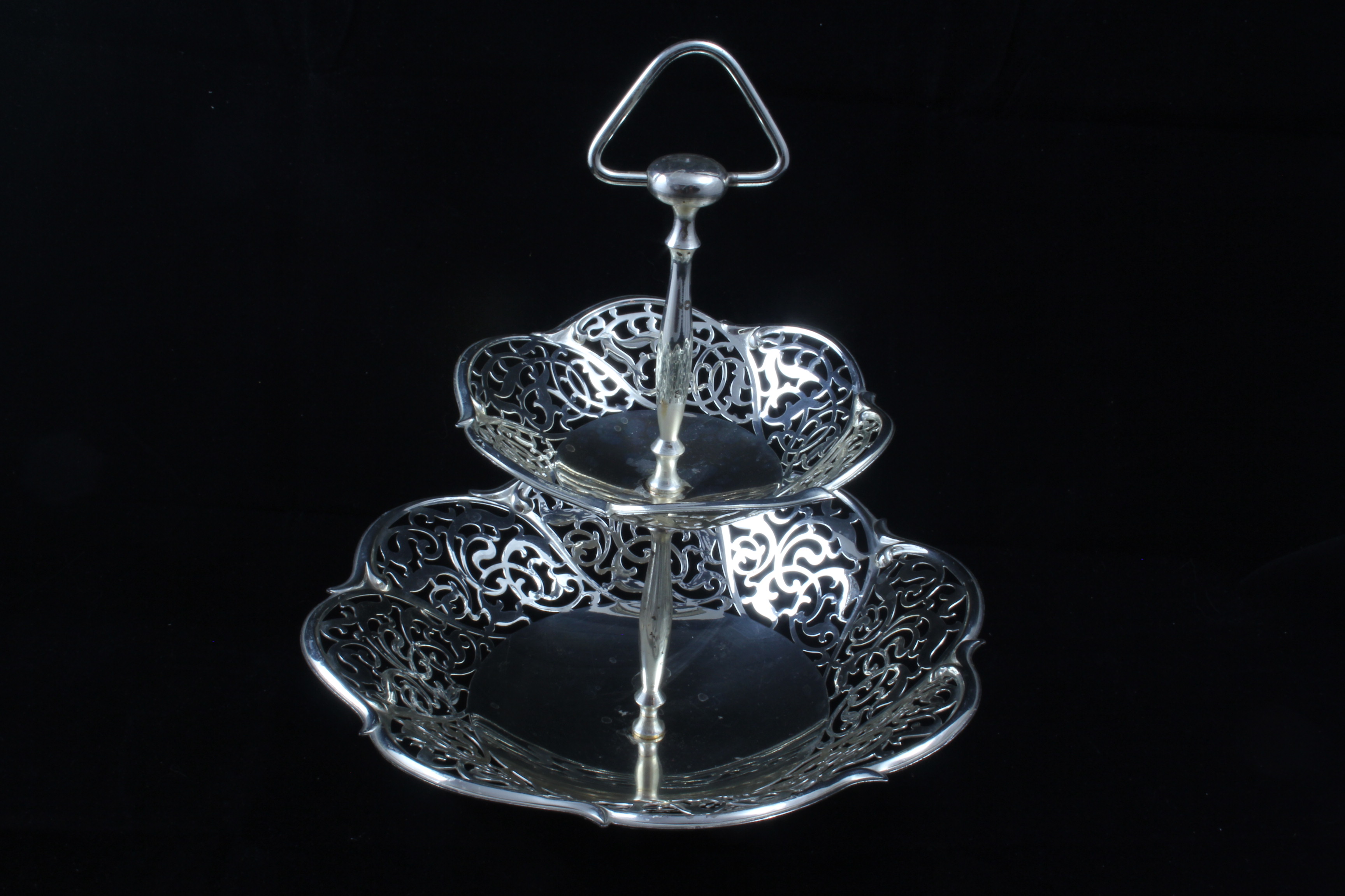 Etagere 2-stöckig mit Kugelfüßen versilbert