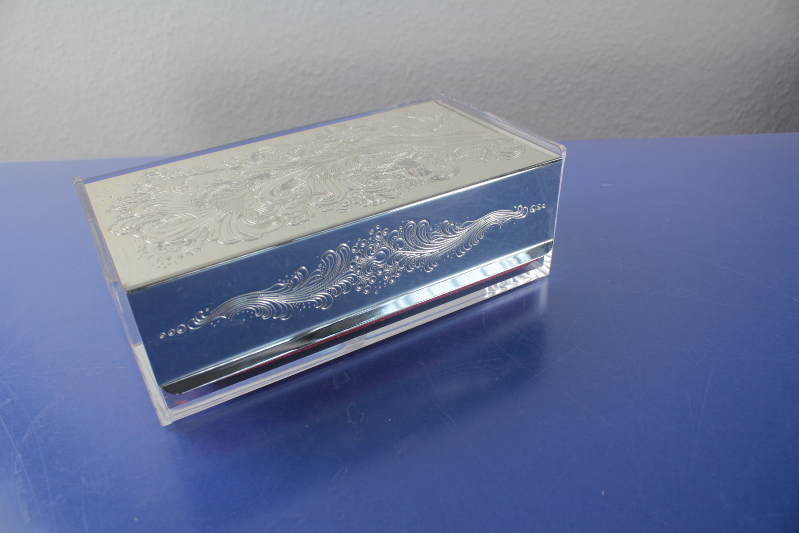 Material: Plexiglas + Deckel versilbert