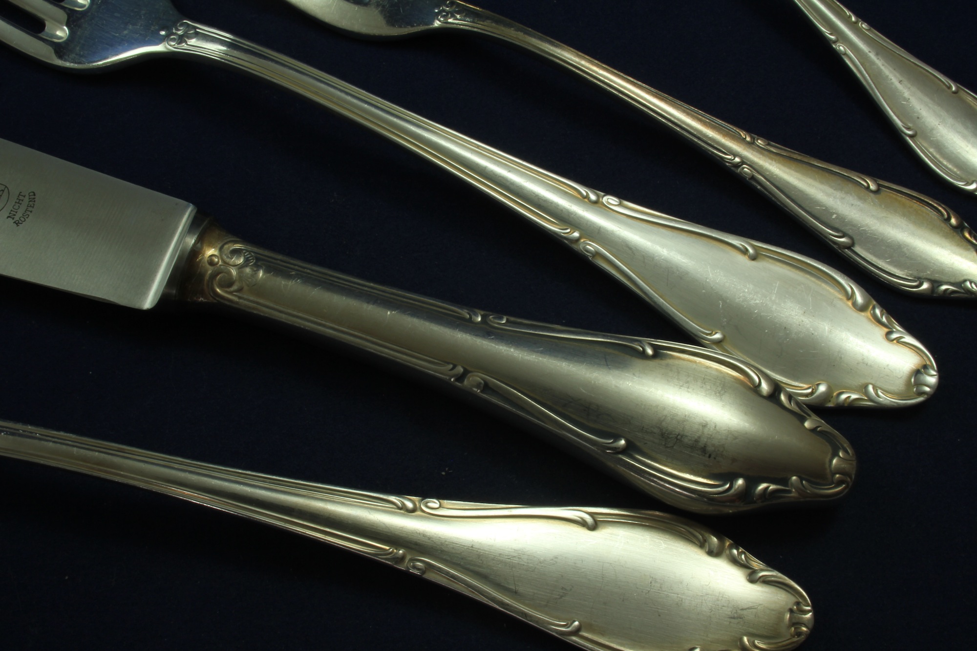 30 Teile: 6 Speisemesser, 6 Speisegabeln, 6 Speiselöffel, 6 Kuchengabeln, 6 Kaffeelöffel