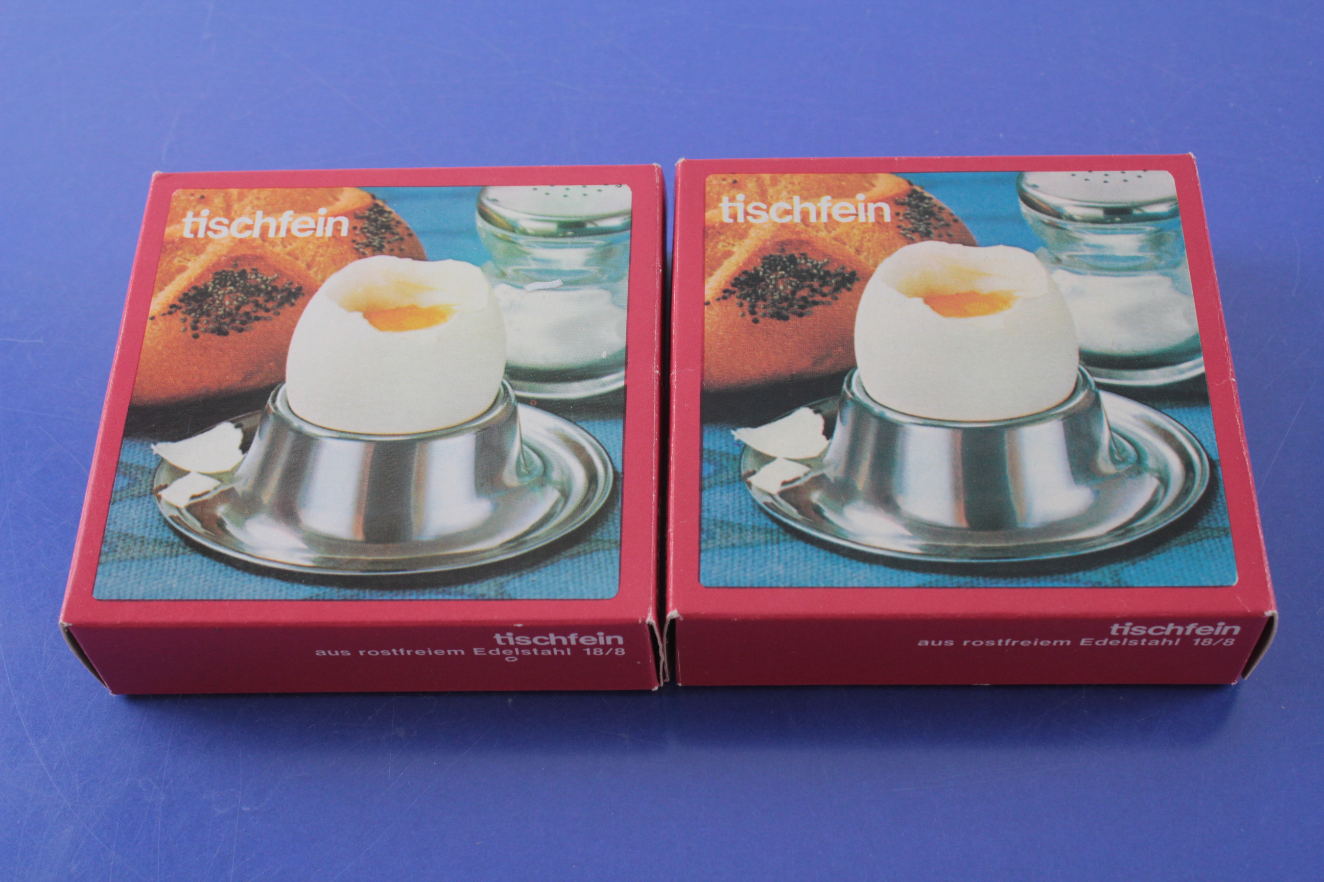 WMF Tischfein 2 Eierbecher Material: Edelstahl Zustand: 1-2 0: neu 1: wie neu, unbenutzt 2: geringe Gebrauchsspuren 3: guter Zustand mit normalen Gerbrauchsspuren 4: deutliche Gebrauchsspuren 5: mit starken Mängeln/ Gebrauchsspuren laut Beschreibung